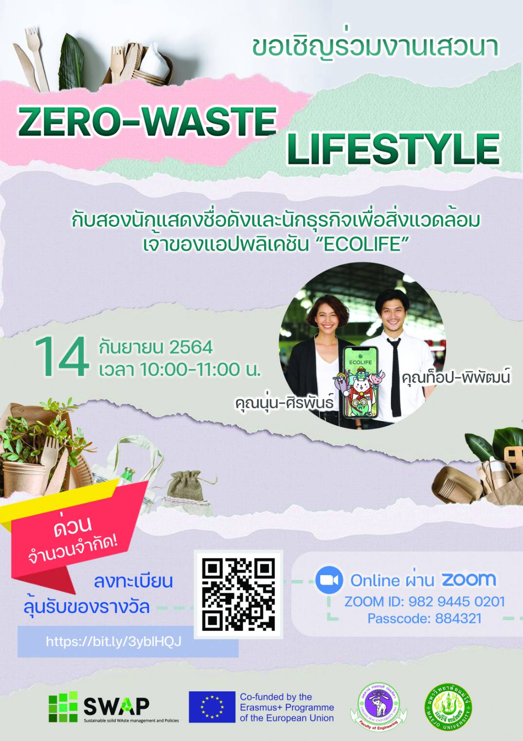 Maejo University (MJU) joined forces with Chiang Mai University (CMU) to celebrate the first SWAP dissemination event on September 14, 2021. The 2 Thailand-based institutions launched the first public event via Zoom meeting with 146 participants from various provinces. The opening remarks were given by “Top” Pipat Apiruktanakorn and “Noon” Siraphun Wattanajinda, the renowned actor and actress, as well as the executives of KidKid Co., Ltd., one of the leading “ECO” enterprises in Thailand.